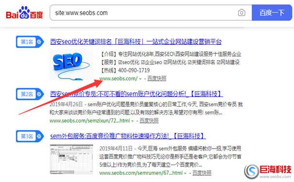 如:SEO外包公司巨海科技網站 site:m.qhblog.cn