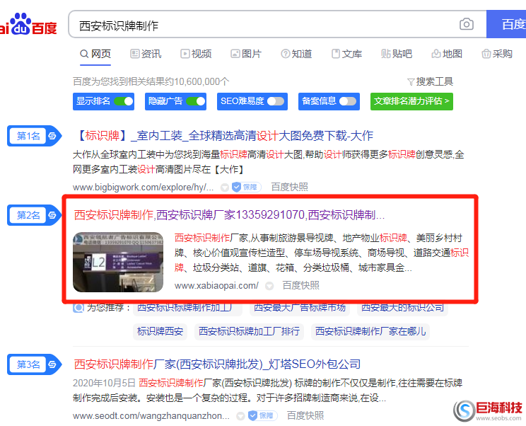 以上就是西安網(wǎng)站優(yōu)化巨海科技提供的近期案例,更多關于“西安標識牌制作等”的相關效果,巨海SEO可以讓潛在有需求的客戶及時找到你,投入成本低回報率高,想了解西安標識牌制作等相關的更多相關內(nèi)容盡在巨海科技!請聯(lián)系我們的在線客服,希望對你有所幫助。